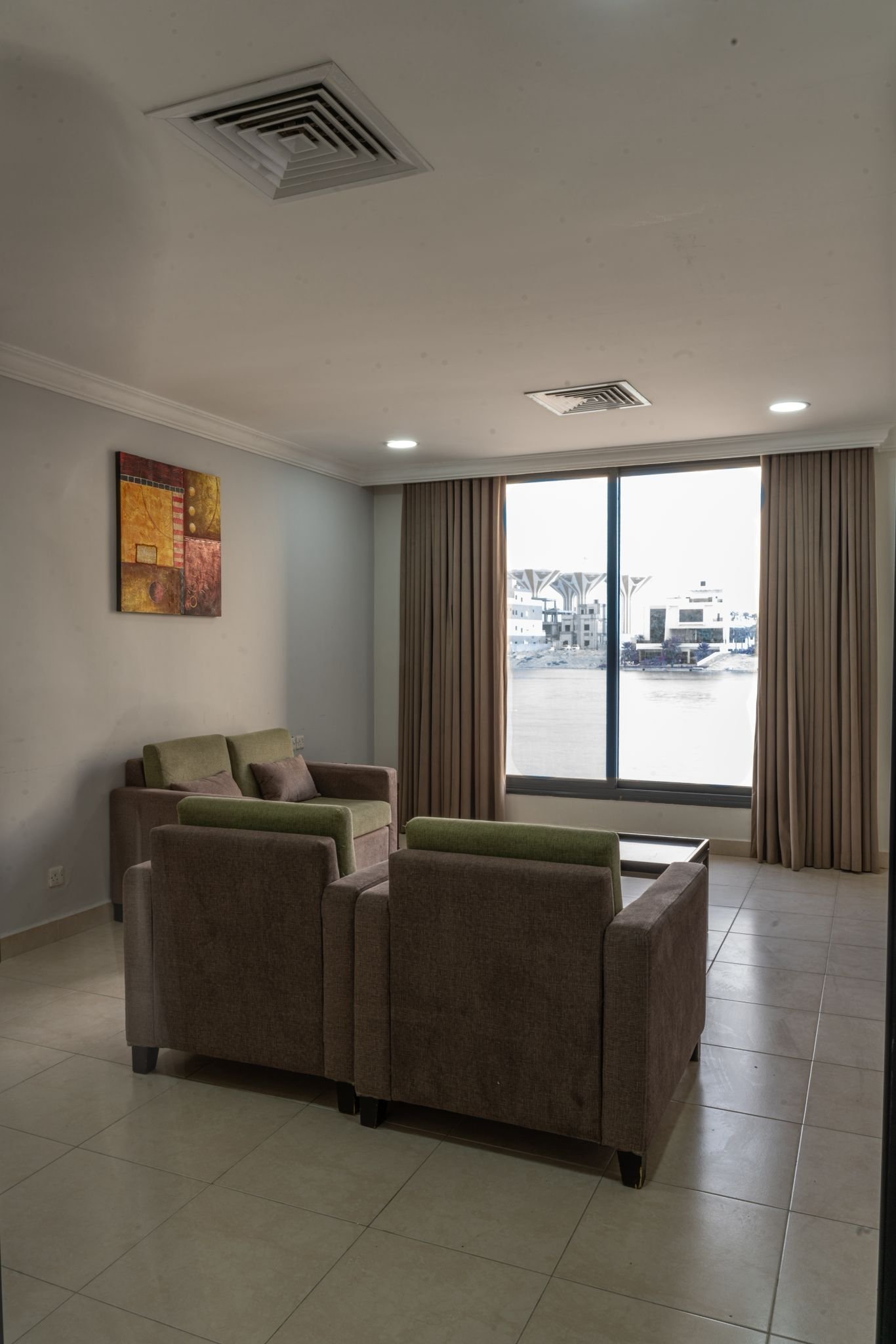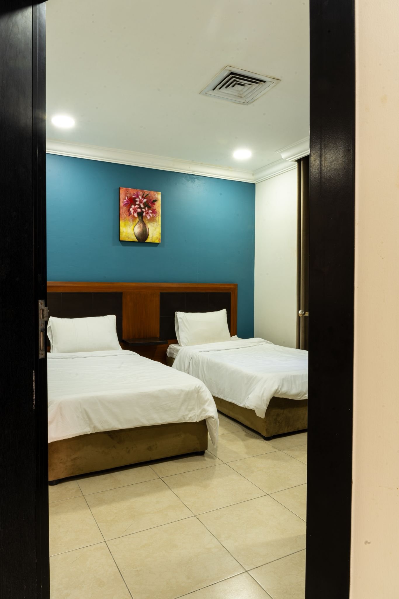•	غرفتان بسريرين منفصلين لكل غرفة.